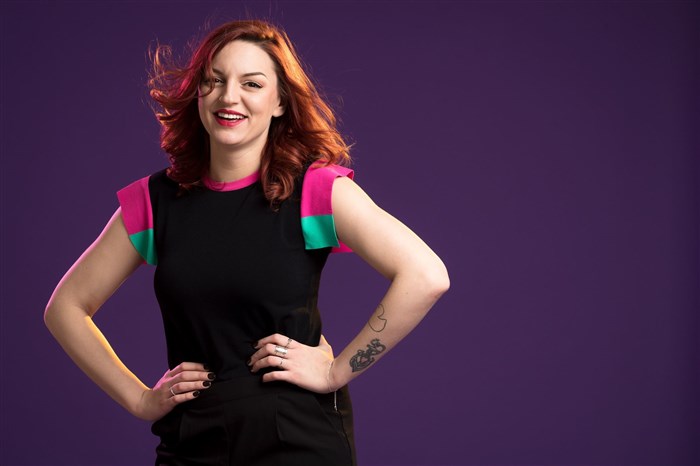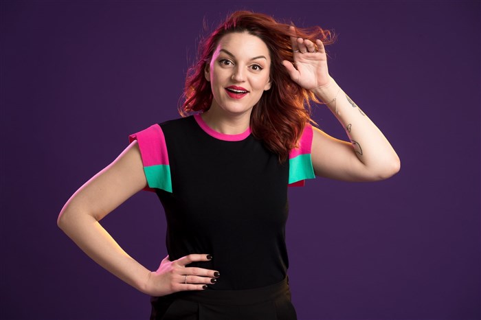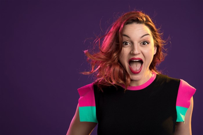 Elle a été remarquée sur Internet et les réseaux sociaux grâce à ses vidéos, pourtant, elle n'est pas une énième humoriste numérique en carton et, perchée sur ses longues jambes, sa chevelure rousse sur la tête, c'est qu'elle en impose sacrément en face à face.