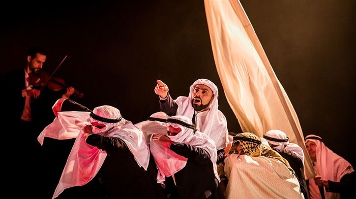 Fasciné par le film "Lawrence d'Arabie", Eric Bouvron aborde, à travers cette fable, les thèmes de l'amitié, de la loyauté et de la trahison, dans un contexte géopolitique passionnant dont l'écho résonne encore fortement aujourd'hui. Huit comédiens interprétant une soixantaine de personnages et trois musiciens-chanteurs, jouent, dansent, combattent et déploient leurs talents pour dessiner sous vos yeux cette fresque aux couleurs orientales.