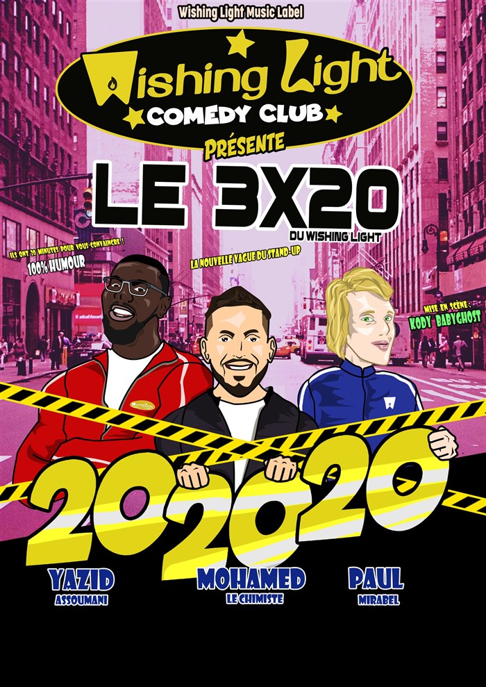 Après avoir lancé les plateaux Stand-up durant l'été 2018, le Wishing Light Comedy Club, une fois de plus, déjoue les règles et innove à nouveau! Alors que les bars de la capitale proposent souvent des 30/30(2 artistes-30 minutes), le "3x20" est un challenge pour ces artistes qui en moins de temps, doivent concentrer leur best-of et ont fait le tri des bonnes vannes qu'ils ont joué durant leurs passages.