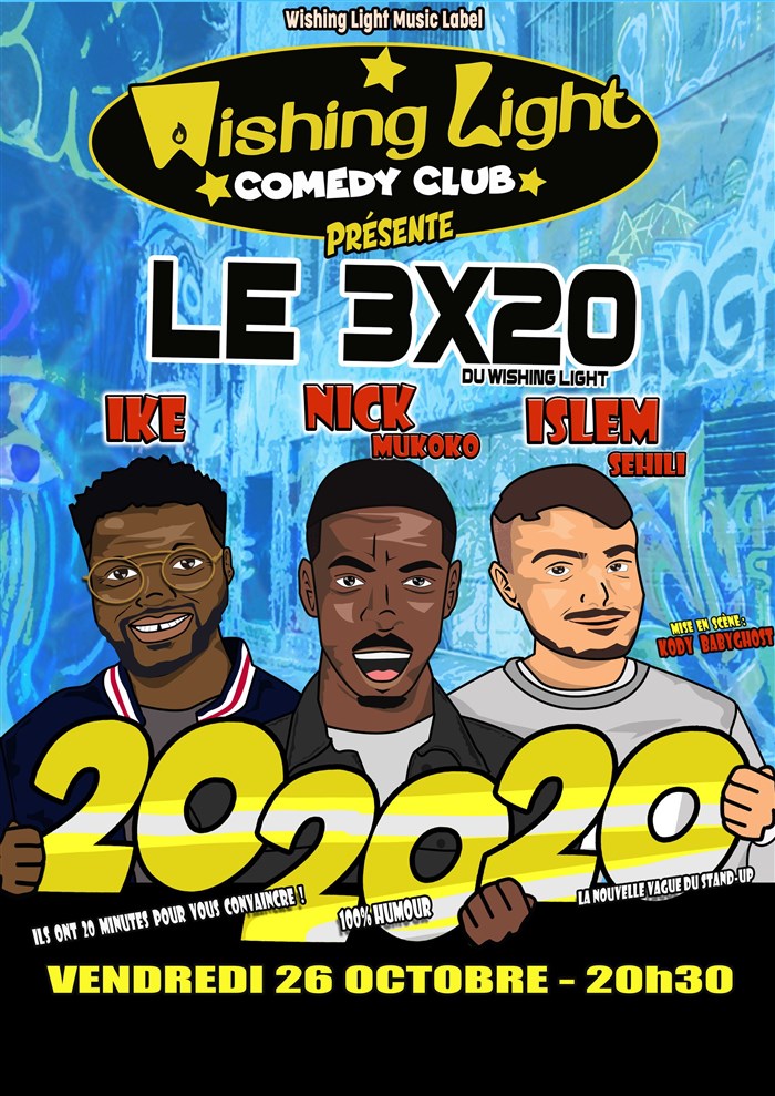 Après avoir lancé les plateaux Stand-up durant l'été 2018, le Wishing Light Comedy Club, une fois de plus, déjoue les règles et innove à nouveau! Lle "3x20" est un challenge pour ces artistes qui en moins de temps, doivent concentrer leur best-of et ont fait le tri des bonnes vannes qu'ils ont joué durant leurs passages.
