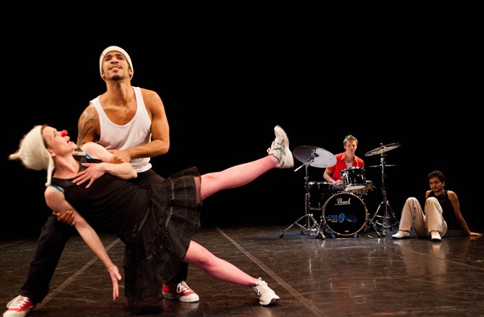 Rencontre improbable entre deux danseurs hip hop, un batteur et une fille clown un peu dingue. Déjanté, décalé, drôle.