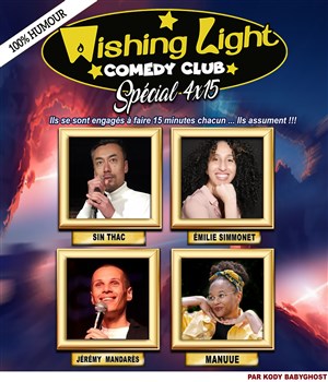 L’événement Le 4x15 du Wishing Light : Sin Thac / Émilie / Jérémy / Manuue de type Plateau d'humoristes, organisé ici : T-Kawa -