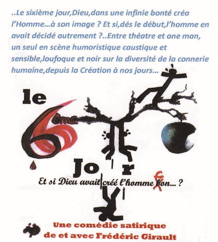 Entre Théatre et one man, un seul en scène humoristique sur la diversité de la connerie humaine, depuis la Création à nos jours...
