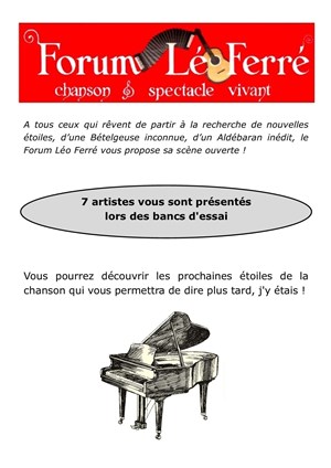 Tu veux savoir ce qu’ont pensé les spectateurs et la presse de cet événement : Le banc d'essai | 22ème édition - Forum Léo Ferré ? Découvre leurs avis éclairés et prépare-toi à vivre un moment d’exception à ton tour en réservant tes places !