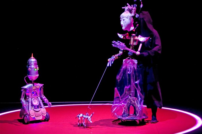 Des pantins, marionnettes, robots et acteurs pour une féerie musicale sur la manipulation des hommes et la tentative de s'acheter du bonheur.
