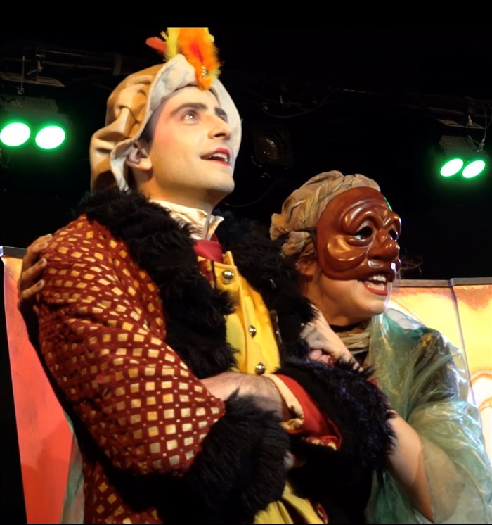 Cette pièce intègre chant, danse, marionnettes, masques dans le respect du texte de l'auteur.