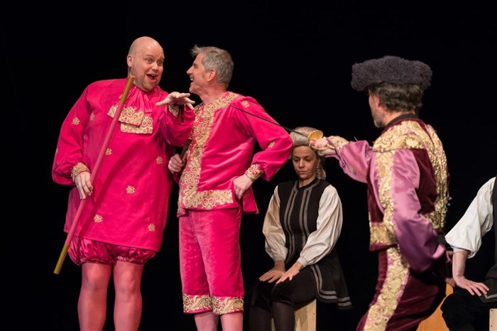 Le spectacle est saupoudré d'intermèdes musicaux et dansés où les costumes mêlent tradition et fantaisie afin de transmettre, dans l'Allegria la plus furieuse, toutes les saveurs de ce chef-d'oeuvre burlesque.