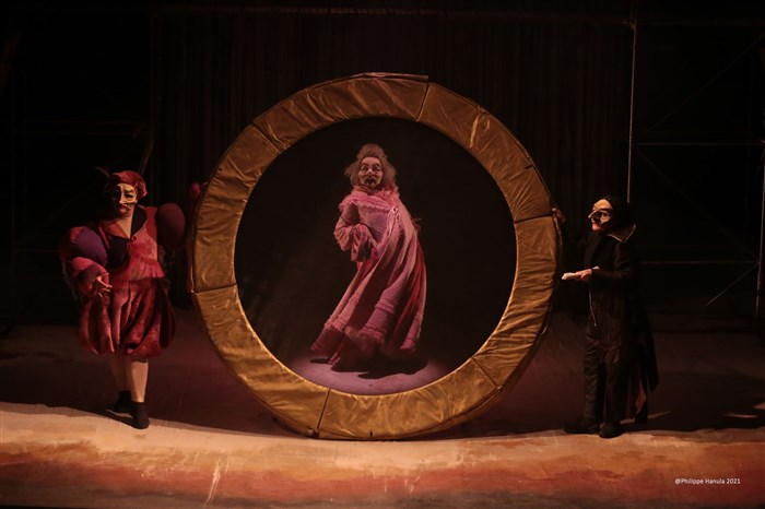La magie et le fantastique sont rendus par le mélange des genres théâtre, danse, acrobaties, le jeu masqué et la quinzaine de personnages décalés aux costumes extravagants et colorés.