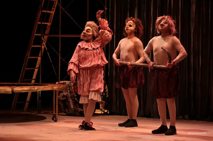 Cette création est une fête, une mascarade festive, jouissive et clownesque.