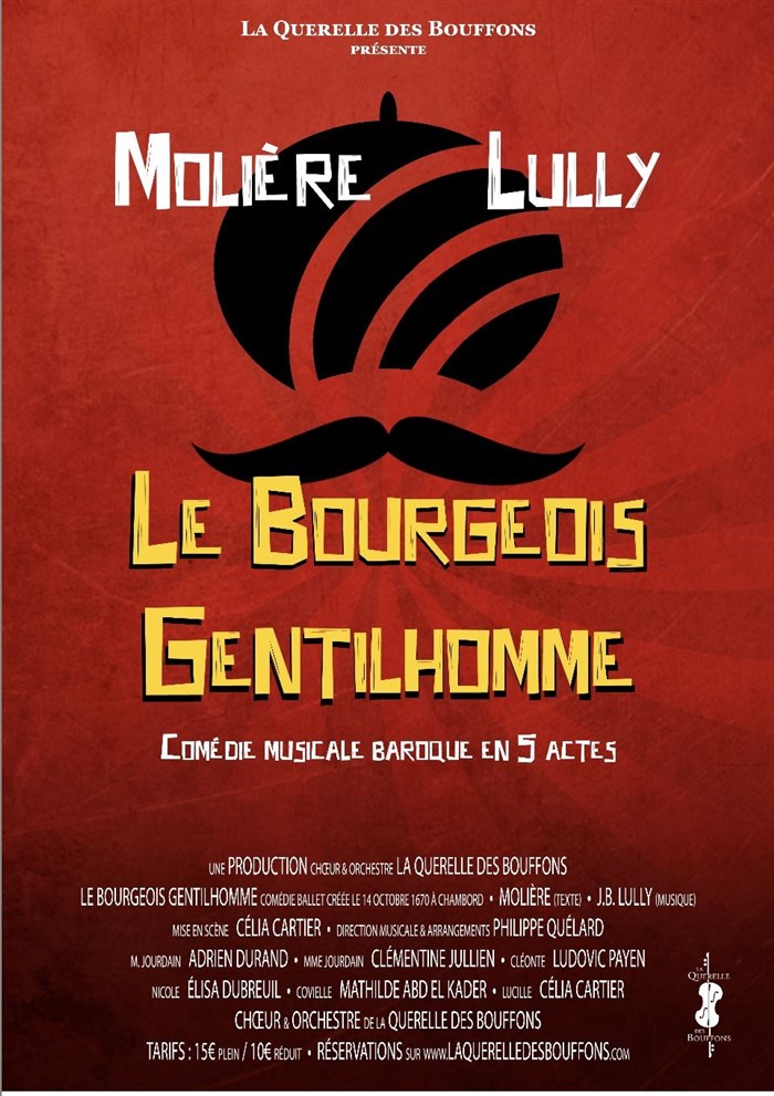 La Querelle des Bouffons monte la fameuse comédie-ballet de Molière, mise en musique par Lully, en 5 actes, avec comédiens, danseurs, chanteurs et orchestre sur scène, dirigés par Philippe Quélard.