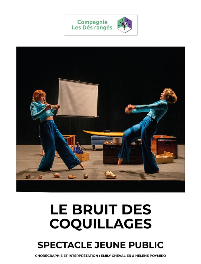Le Bruit des coquillages, création sensorielle dansée et musicale jeune public, aborde le thème de l'Ailleurs et de la relation à l'Autre. A travers la musique et la danse, cette création explore les mouvements et les sons liés à l'énergie et aux rythmes des vagues. Le coquillage symbolise l'inconnu. Il est le témoin qui ouvre le passage vers l'Ailleurs. Objet transitionnel, il fait naître un monde fantasmé et imaginaire.