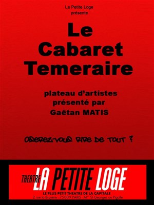 Gaëtan Matis, jeune humoriste à la plume aussi acide que noire, a convoqué quelques amis, et débarque pour la première fois à la Petite Loge pour le Cabaret Téméraire.