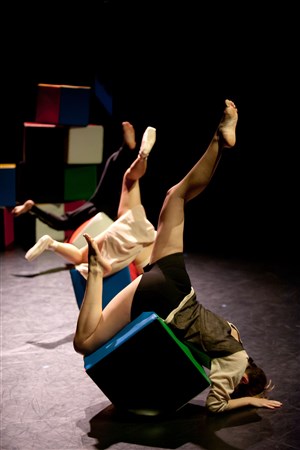Force, souplesse et dextérité se dégagent des corps des danseurs, rendant vivante la matière brute de l'animal. Les trois artistes évoluent avec 12 cubes colorés et ludiques, non sans rappeler les 12 animaux du carnaval.