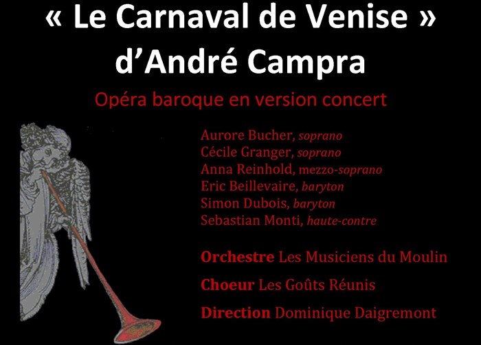 Le concert des 20 ans des Goûts Réunis, une structure originale qui rassemble cette année de grands solistes, le jeune orchestre des Musiciens du Moulin et le choeur des Goûts Réunis pour un joyeux opéra baroque : Le Carnaval de Venise".