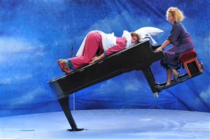 Après s'être formé au théâtre de rue, puis à l'Ecole de Cirque Internationale de Montréal, le belge Dirk Van Boxelaere s'est associé à sa compatriote Fien Van Herwegen pour créer des spectacles qui renouvellent les arts circassiens et mettent en musique leur poésie.