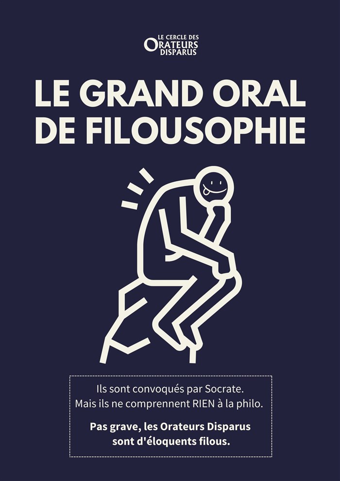 Le Grand Oral de Filousphie est une pièce d'éloquence proposée par le Cercle des orateurs disparus Le Cercle des orateurs disparus est composé d'avocats, chanteurs, chargés de plaidoyers, professeurs, poètes, comédiens, humoristes, auteurs. Tous partagent l'amour des mots et de la langue française.