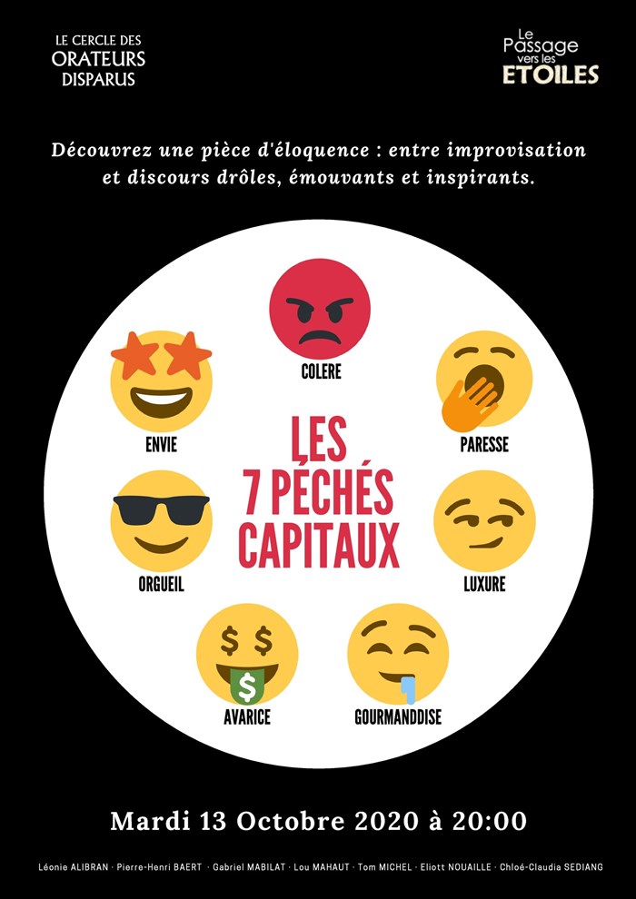 Tu veux savoir ce qu’ont pensé les spectateurs et la presse de cet événement : Le cercle des orateurs disparus dans Les 7 péchés capitaux à la barre - Théâtre le Passage vers les Etoiles ? Découvre leurs avis éclairés et prépare-toi à vivre un moment d’exception à ton tour en réservant tes places !