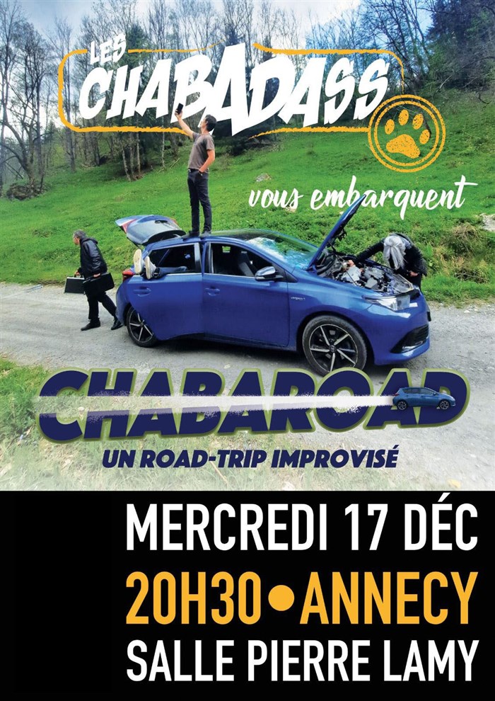 Découvre Le chabaroad : road trip improvisé par les chabadass, qui fait partie de notre sélection d’événements de type Comédies pop’ et qui se tient ici : Salle Pierre Lamy -