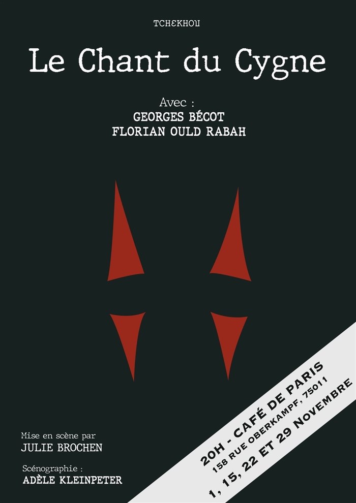 Je ne regrette pas ma traversée de Paris et d'être entré dans ce bar qui cachait,derrière une porte une "salle" dédiée au théâtre.J'avais vu, il y a très longtemps,cette pièce dont le texte et l'interprétation m'avaient percuté le coeur.Dans cette approche trop surjouée par le comédien ,méritant au demeurant,je n'ai pas eu la vibration émotionnelle qui vous parcourt le corps,faute d'avoir éprouvé au plus profond de mon être, l'intensité dramatique de ce texte d'une éblouissante "noirceur".En outre, le parti pris de faire apparaître le comédien en clown blanc( et donc triste en la circonstance )n'était pas, à mon avis(partagé par quelques autres personnes)de nature à sublimer vraiment ce texte. Hormis le plaisir de réentendre ce "chant du cygne", je n'ai pas été pénétrée d'émotions et je le regrette vivement.Néanmoins je reste consciente et admirative du travail fourni par les uns et les autres(comédiens et metteur en scène) pour faire résonner ce chant du cygne