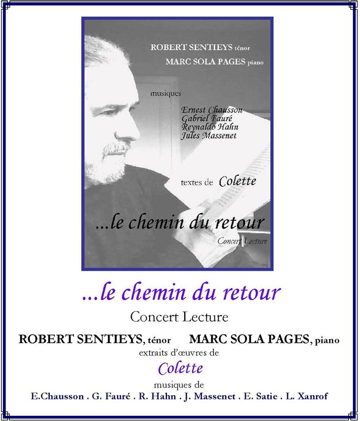 Textes de Colette sur des musiques de E.Chausson, G.Fauré R.Hahn, J.Massenet, Mireille, E.Satie, Xanrof.