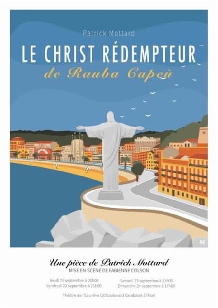 Excellente pièce de Patrick Mottard ! Le Christ Rédempteur est la grande statue du Christ qui domine Rio de Janeiro, au Brésil... Que se passerait-il si, en 2060, le nouveau maire de Nice, aux idées extravagantes, installait cette oeuvre de 38 mètres de haut à Rauba Capeù, dans le cadre d'un échange de monuments ? Au final, une pièce loufoque et drôle, portée par des personnages hauts en couleur, bourrée de clins d'oeil sur la vie politique niçoise. Mention spéciale à Didier Veschi, en premier adjoint plus vrai que nature, et Virginia Ricordeau, en journaliste télé enthousiaste.