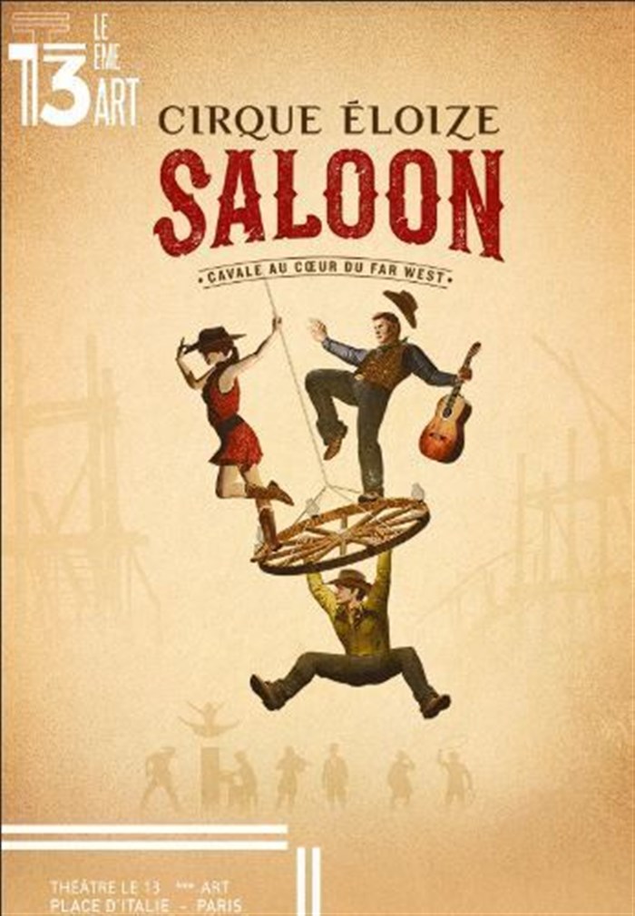 Dans le Saloon du Cirque Éloize, l'énergie contagieuse de la musique folk, aux airs de Johnny Cash et de Patsy Cline, donne le ton à une comédie acrobatique qui impressionnera toute la famille. Les spectateurs sont entrainés dans une course folle à base des plus grands numéros du cirque contemporain: de la roue cyr, aux sangles, la planche coréenne ou le main à main... tous à couper le souffle, et tout çà en musique et en chorégraphie avec un orchestre et des chanteurs live sur scène. Laissez-vous emporter par les performances autant physiques que vocales dans ce spectacle au rythme effréné... du plus grand Western !