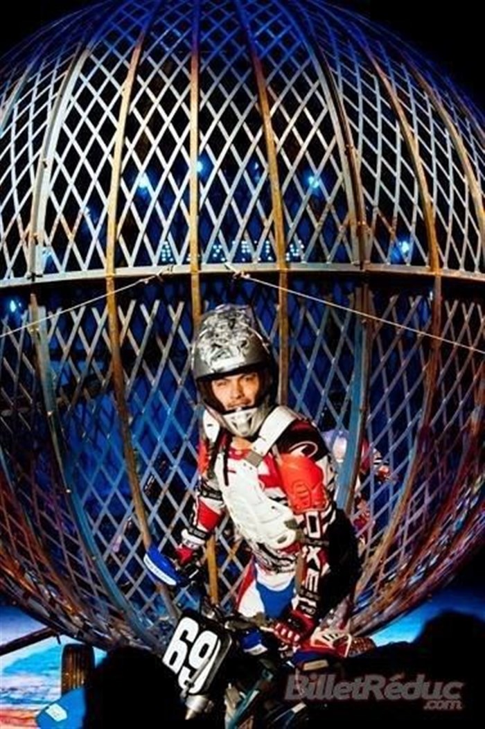 - La troupe Martinez dans un numéro de cascadeurs à moto dans un globe de métal,