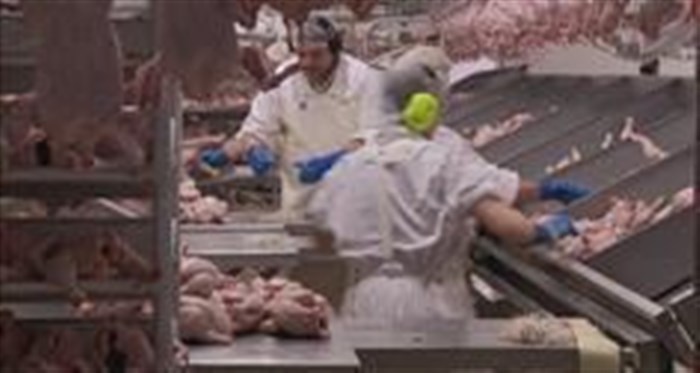 Manuela Frésil s'est introduite au coeur d'une dizaine d'abattoirs industriels français, du petit matin à la sortie d'usine, aux côtés d'ouvriers à la chaîne, qui tranchent, dépiautent, ficellent, chargent. Réalisé à partir de récits de vies de salariés et de scènes tournées dans des usines, Entrée du personnel raconte l'emballement des cadences et la répétition infernale, l'affolement des gestes quotidiens...