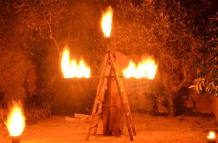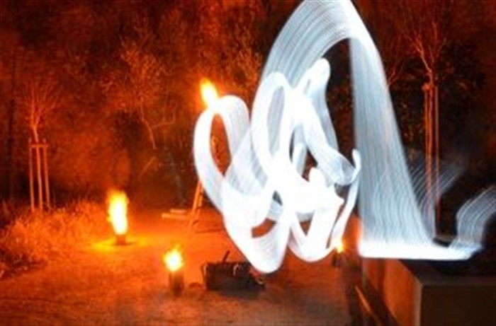 Voyage avec le jongleur de feu dans un univers de magie, de poésie, de musique et d'imprévus, à travers un bâton enflammé, bolas, fouet et autres.