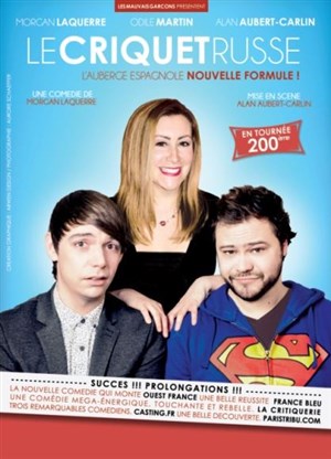 Ce soir j'ai donc découvert la pièce Le Criquet Russe avec un trio haut perché de talent et des sacrés long fous rires. La pièce est extraordinaire on ne s'ennuie pas une minute le rire est continu autour de cette histoire rocambolesque d'accent russe et de ce fabuleux criquet sans oublier "Maman" un peu poussiéreuse certes mains bien présente ... Bravo aux 3 comédiens et MERCI pour cette belle soirée et votre entière disponibilité en fin de scène... A voir et revoir !!!