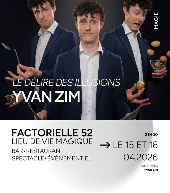 Découvre Yvan Zim dans Le délire des illusions, qui fait partie de notre sélection d’événements de type Magie et qui se tient ici : Factorielle 52 -