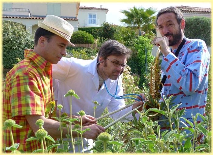On vous prévient, il est accompagné de ses deux cas les plus lourd : Jean-Rémy à la batterie (un horticulteur de St Laurent du Var qui se prend pour un de ses ancêtres musicien réunionnais), et Toinou, vieux berger de la Vésubie à la flûte et au sax alto.