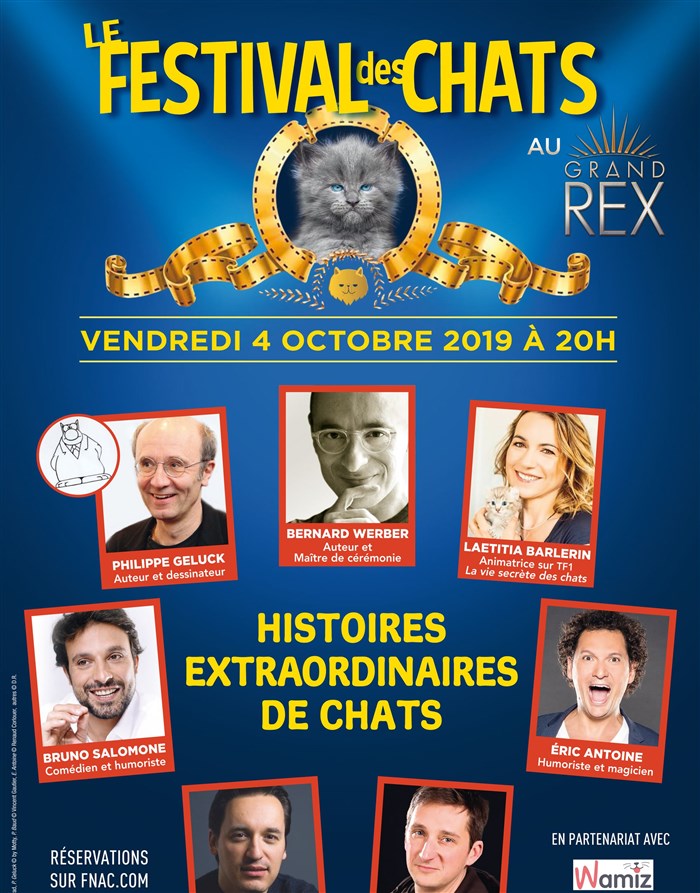 Seront présents : l'auteur et dessinateur Philippe Geluck, Laëtitia Barlerin, animatrice de " La vie secrète des chats " sur TF1, l'humoriste et magicien Eric Antoine, le comédien Bruno Salomone, l'humoriste Sellig, Patrick Baud, auteur et vidéaste et enfin le Dr Jean-Yves Gauchet, vétérinaire et ronronthérapeute.