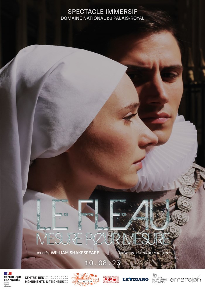 Emersiøn, en partenariat avec le Centre des Monuments Nationaux, a l'honneur de présenter un spectacle exceptionnel au Domaine national du Palais-Royal. Du 10 au 27 août à 20h (plus une représentation supplémentaire nocturne le 26 août à 22h30), au pied du Ministère de la Culture, du Conseil constitutionnel et du Conseil d'État, les spectateur·ices vivront l'adaptation de "Mesure pour mesure" de Shakespeare, adaptée en immersif par le metteur en scène de "Helsingør, château d'Hamlet" et sa troupe composée de 17 interprètes, comédien·nes et musicien·nes.
