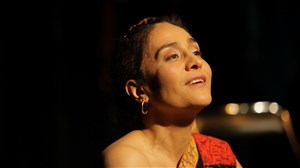 "Asuman, un vieux conteur indien, a transmis les histoires dont il est le dépositaire, à une femme, qu'il baptisera du prénom indien d'Amshula. Aujourd'hui, Amshula et son musicien, racontent sur les routes de France l'une des plus belles histoires léguées par Asuman, celle du Garçon à la peau bleue."