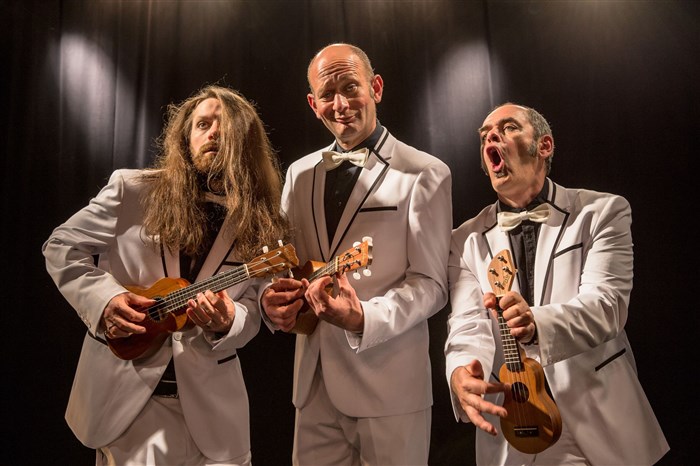 Spectacle jubilatoire. Entre deux scène absurdes ou empreintes d'émotions, ils passent de Figaro aux Rolling Stones, du solfège aux claquettes, du classique à la pop, avec pour instruments leur voix et un ukulélé.
