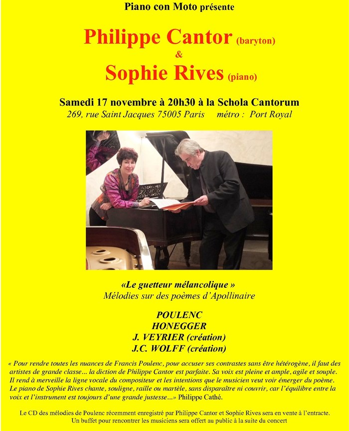 Tu veux savoir ce qu’ont pensé les spectateurs et la presse de cet événement : Le guetteur mélancolique | Mélodies sur des poèmes d'Apollinaire - Schola Cantorum ? Découvre leurs avis éclairés et prépare-toi à vivre un moment d’exception à ton tour en réservant tes places !