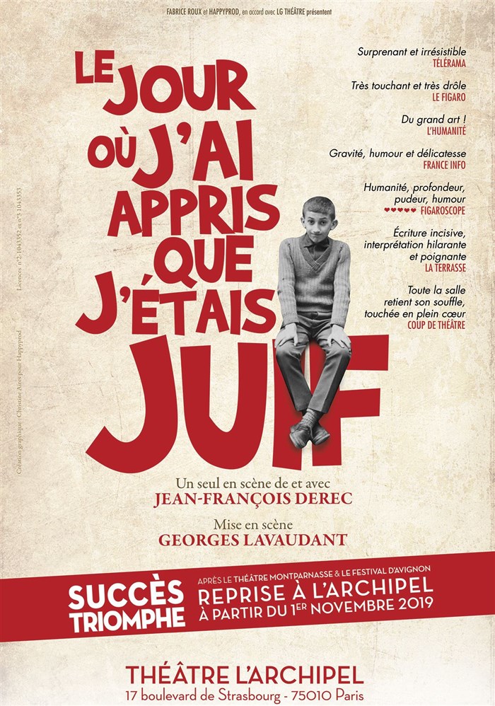 L’événement Le jour où j'ai appris que j'étais juif de type One man show, organisé ici : L'Archipel - Paris, n'est plus disponible à la vente.