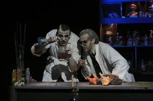Sous les lumières verdâtres, les marionnettes-cobayes manipulées avec dextérité font preuve d'un humour réjouissant.