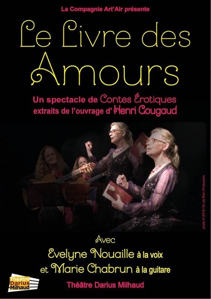 La conteuse et comédienne Evelyne Nouaille fait la lecture, accompagnée à la guitare par Marie Chabrun qui crée des ambiances médiévales, contemporaines, sud-américaines... Elle prête sa voix à la plume d'Henri Gougaud au travers de son " Livre des Amours ", des contes de fées pour adultes venus du fond des âges et des quatre coins du monde et qui racontent les mille et une façons de célébrer l'union des corps : facétieuses, mythiques, mystiques, initiatiques, oniriques... mais toujours amoureuses.