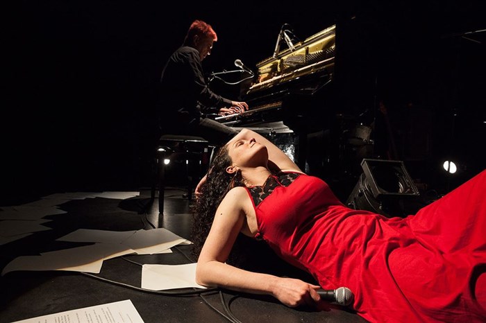 Le spectacle se déroule comme un concert où chaque morceau trouve un écho dans un texte.