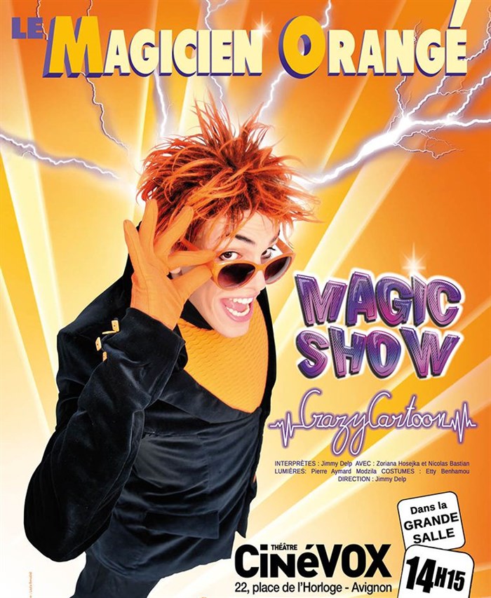 Un spectacle où on se sent acteur et complice des loufoqueries du Magicien Orangé, sauf peut-être quand ses lunettes fétiches disparaissent pour faire place à un régime de dynamite... Ça va juter de plaisir ! Rangez les parasols et laissez-vous Orangiser !