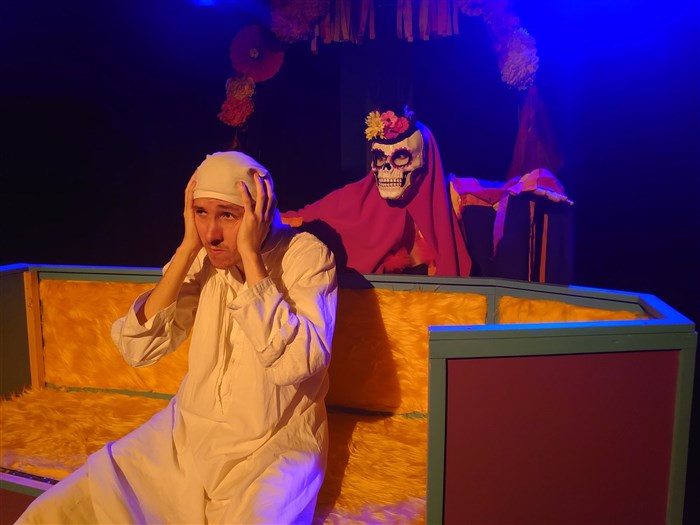Argan, grand hypocondriaque et mari manipulé par sa femme, est proche de sa mort. Mais il n'a peut-être pas tout réglé dans sa vie terrestre... Il sort de son cercueil-banquette et, aidé par des perfusions, rencontre de drôles de créatures, incarnées par une servante déjantée et un musicien psychédélique.