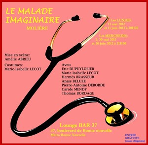 L’événement Le malade imaginaire de type Théâtre-resto, organisé ici : Lounge Bar 37 -