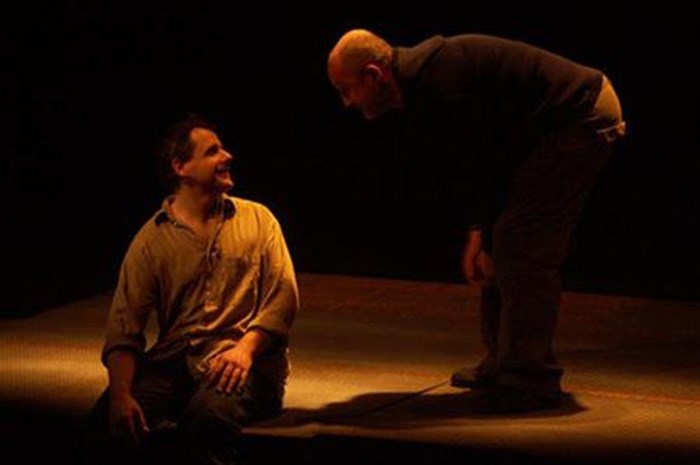 Ce spectacle est le premier volet de la trilogie du " Manuscrit des chiens " de Jon Fosse, auteur norvégien, dont le style concret, et dense a séduit le metteur en scène Christophe Laluque.