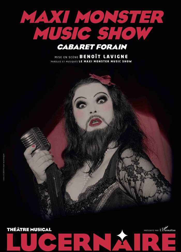 Pour les fêtes de Noël, le Lucernaire accueille le nouveau spectacle du Maxi Monster Music Show mis-en-scène par Benoit Lavigne ! Dans sa baraque foraine, la célèbre Poupée Barbue et ses freaks musiciens vous embarquent pour un show rock'n'roll et déjanté ! Personnages extraordinaires ou merveilleuses arnaques inventées de toutes pièces ? Découvrez leur univers burlesque et rétro inspiré des années 30 et laissez-vous envoûter par la Femme à barbe et sa troupe d'incroyables phénomènes ! Un concert spectaculaire hors normes pour tous les monstres, petits et grands, à partir de 12 ans !