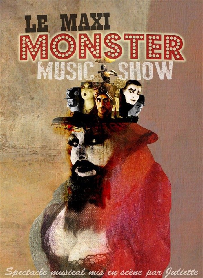 Le Maxi Monster Music Show plante le décor d'une surprenante attraction de foire ancienne avec son lot de personnages hors normes : femme à barbe, homme fort, danseuse mécanique, femme-tronc, homme-femme, ange noir, fakir mystique...