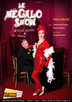 Le Mégalo Show, c'est un duo de comédiens surréalistes interprétant des chansons françaises inédites et décapantes, à l'humour grinçant, noir comme un chapeau melon et rouge comme le rideau du Stratosphère théâtre de Las Vegas, une balade dans les "rêves" chantés d'une artiste loufoque, du théâtre musical décalé avec comme toile de fond la dérision du monde du show-business qui fabrique des rêves et des monstres... sacrés.