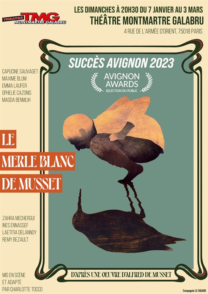 Après un succès au festival d'Avignon Off 2023, Charlotte Tocco et sa troupe reviennent au Montmartre Galabru pour vous présenter le Merle Blanc de Musset.