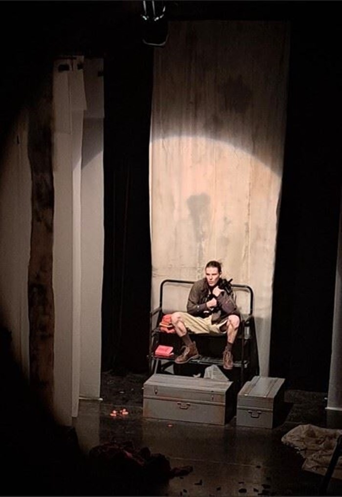 L'occupation du plateau reproduit de façon minimaliste les différentes zones de la ville en ruine, comme autant de théâtres de scènes de guerre, à l'image de ce que vivent les personnages, prisonniers de leur environnement.